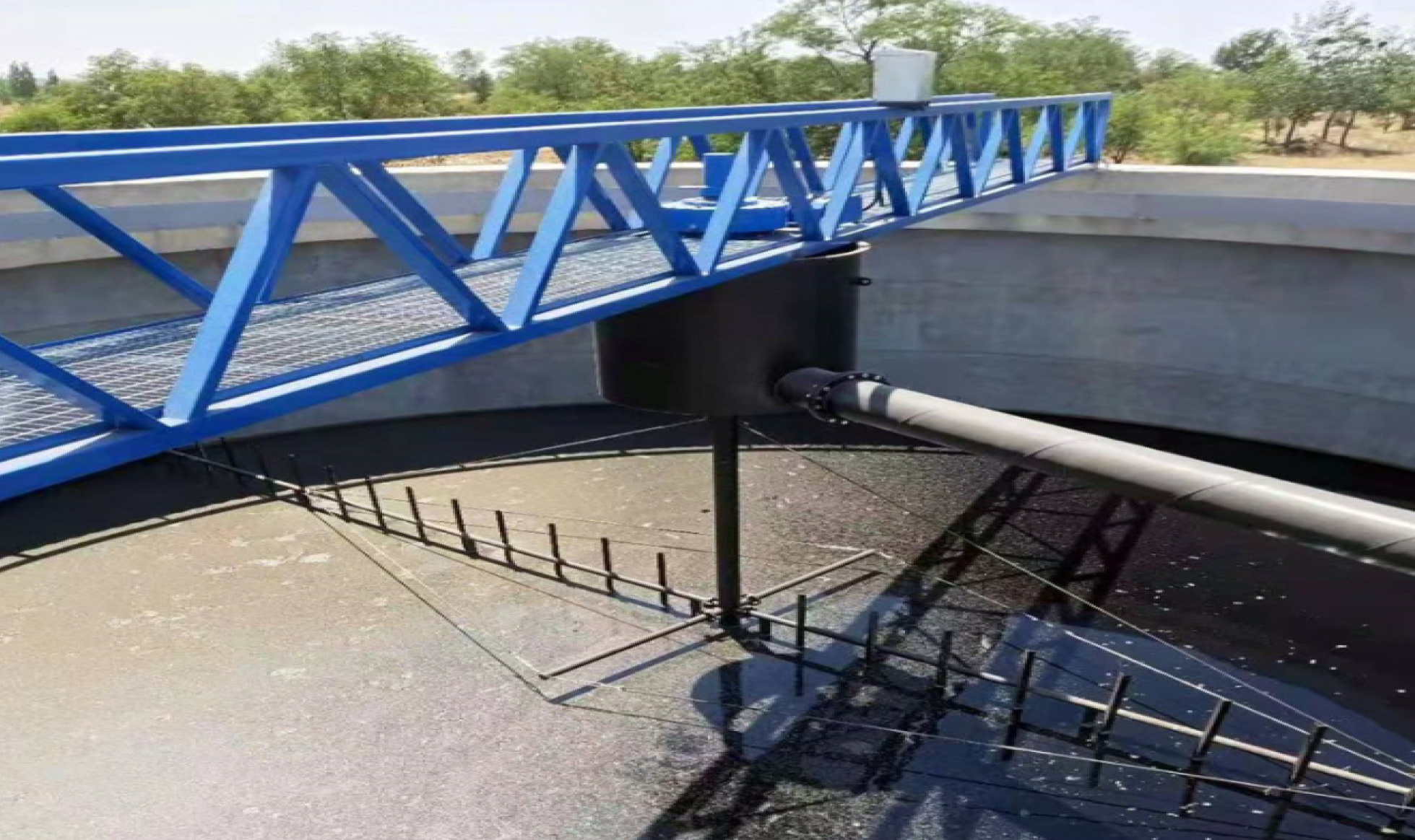 通过减速驱动和悬挂式组件的传动,由刮板将污泥刮集到中心集泥槽,依靠静水压力或 泵排出池外。采用中间进水和排泥,周边排水,保证水流均匀。