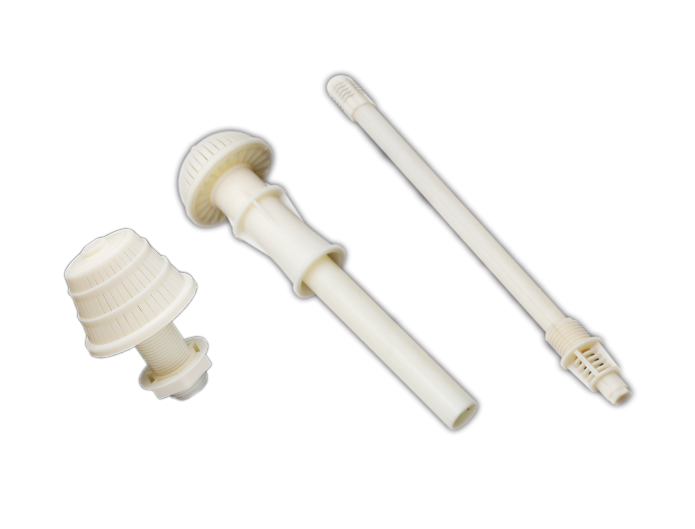 滤帽采用ABS工程塑料制造,表面光滑,无毛刺,承压强度高,踩碰不碎,在滤头结构中采用强化螺纹,增设橡胶垫圈,联接牢固,永不脱落。滤头帽底座设计增强底缝,使与滤板间无死水区,不积泥等优点。滤水帽滤头按形状可分为:蘑菇形、圆拄形、塔形、梅花形等几种滤头,使用中可根据不同的设计要求及滤头的工作环境,采用不同结构的滤头(如:长柄、短柄,按流量可为:流量:1吨、0.5吨、0.25吨),长柄滤头滤水帽应用于滤池气水反冲洗配水系统;短柄滤头应用于滤池单水反冲洗和重力式、压力式滤罐及离子交换滤床等配水过滤系统。短柄滤头应用于单水反冲洗和重力式,压力式滤罐及离子交换滤床等水处理设备的过滤装置。